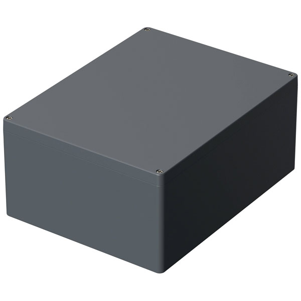 The BOPLA EUROMAS A 185 aluminium housing is industrial-grade with a silver-grey finish (RAL 7001). It is ideal for protecting electronic components, offering robust and durable enclosure solutions. Typical applications include industrial and electronic systems requiring secure, empty metal casings.