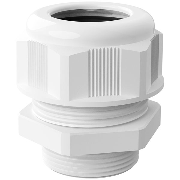 BOPLA 12000321 is a cable gland designed with M32 x 1.5 threading, manufactured from durable polyamide material and presented in a white colourway. This component is essential in the field of pin connectors, offering reliable sealing and strain relief for cable entries across various electronic and electrical applications. Its robust construction ensures optimal performance in environments requiring secure cable management. The cable gland is particularly suitable for use in control panels, machinery housings, and other industrial setups where maintaining the integrity of cable connections against dust, moisture, and mechanical stress is critical. With its precision engineering, the BOPLA cable gland facilitates ease of installation while upholding high standards of operational safety and efficiency.