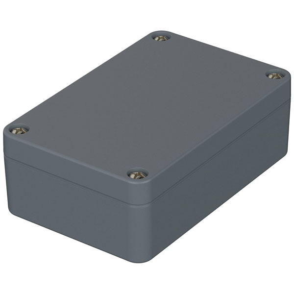 BOPLA manufactures the Polymas PK 102, a universal enclosure made of polyamide with dimensions of 98x64x34mm. The enclosure is finished in silver-grey (RAL 7001) and offers robust protection for electronic components. It is typically used in applications requiring durable casing for sensitive electrical installations.