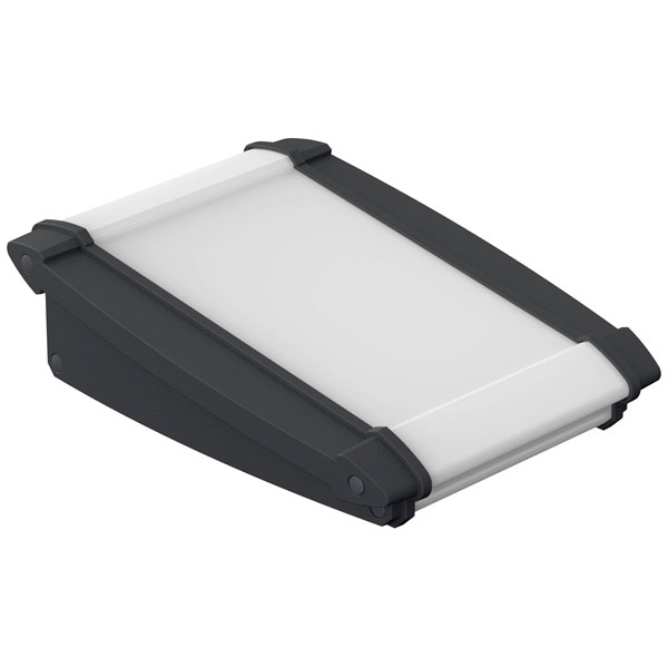 BOPLA manufactures the ALU-TOPLINE ATPH 1850-100 desk casing, an aluminium and acrylonitrile butadiene styrene unit with dimensions of 100 x 181 x 53 mm. The casing, available in graphite grey, is ideal for housing displays or electronic components. Typical applications include use in office settings or industrial control panels.