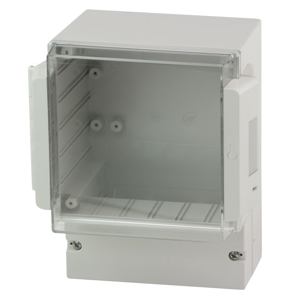 This 166 x 161 x 93mm RegloCard-Plus enclosure from BOPLA is made from light grey ABS with a crystal clear hinged lid and are ideal for wall mounting. These enclosures have vertical and horizontal internal grooves to facilitate easy insertion of mounting plates and PCBs.