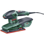 The Bosch PSS 250 AE sander has a vibration dampening design which makes your work more comfortable and efficient. It has an integrated dust extraction system with a micro-filter and transparent filter box to indicate the fill level ensuring sanding dust is extracted quickly from the workpiece. The high extraction power reduces dust in the air and helps keep a clean workplace. An additional advantage of the new orbital sander is the sanding plate with its high-quality micro hook-and-loop attachment system. This gives up to 50% longer lifetime than common hook and loop fasteners. It also features improved temperature resistance, safer and stronger grip even after long periods of use. The Bosch electronics system preselects and controls the speed according to the material. The PSS 250 is a compact orbital sander for one and two-handed use. With soft grip, compact design. , and dust extraction.