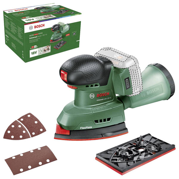 The Bosch Home and Garden UniversalSander 18V-10 is a versatile 18 V sander designed for efficient and precise woodwork and finishing tasks. This compact and ergonomic sander is ideal for sanding furniture, doors, and various wood surfaces. Known for its reliable performance, the Bosch 06033E3100 Router enhances productivity with its seamless operation in home improvement projects.
