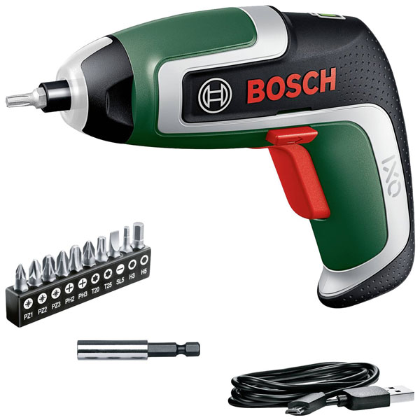 The Bosch Home and Garden IXO 7 basic is a compact cordless screwdriver powered by a 3.6 V 2.0 Ah lithium-ion battery, ideal for household DIY tasks. It includes rechargeable batteries and comes with a case for convenient storage and portability. The screwdriver's ergonomic design and reliable power make it suitable for assembling furniture or tightening screws efficiently.