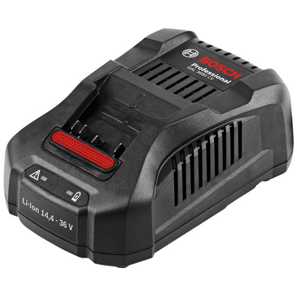The Bosch GAL 3680 CV Multi-Volt Fast Charger produced for all Bosch Li-ion batteries from 14.4 to 36 volts. It offers 100% faster charging of the batteries (compared to AL 3640 CV). Active Air Cooling provides longer lifetime of the batteries. The quick charge mode means a 4.0Ah battery is ready to use with 80% of its capacity after only 25 mins.