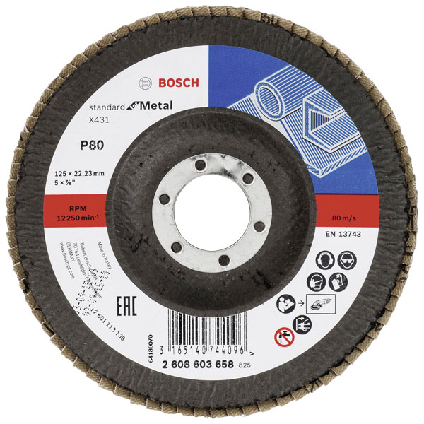 Bosch 2608603658 X431 Flap Disc 125mm 22.33mm Bore Metal 1 piece Durable