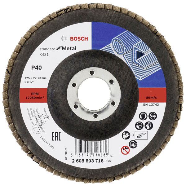 Bosch 2608603716 X431 Flap Disc 125mm 22.23mm Bore Zirconium Oxide