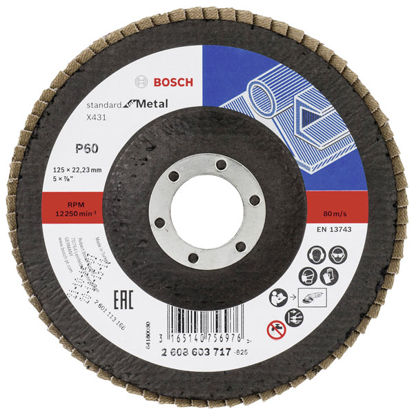 Bosch 2608603717 X431 Flap Disc 125mm 22.33mm Bore Metal Finish 1piece