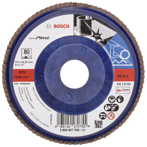 Bosch 2608607336 X571 Flap Disc 115mm Diameter 22.33mm Bore Metal Work