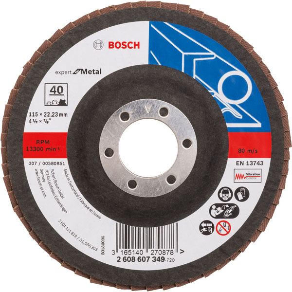 Bosch 2608607349 Flap Disc 115 x 22.23mm 40 Grit for Metal