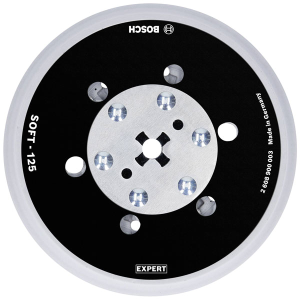 Bosch' EXPERT Multihole universal support plate is designed for use with 125 mm sanding discs. It features a soft surface, providing optimal support for precision sanding applications. Ideal for various sanding tasks, it ensures efficient dust extraction and improved surface finish.