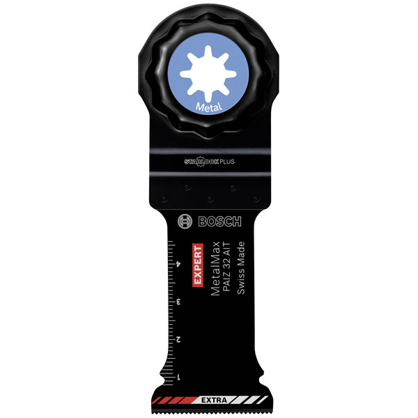 The Bosch EXPERT MetalMax PAIZ 32 AIT is a carbide plunge saw blade. It is designed for precise and clean cuts on metal materials, making it ideal for professional metalworking tasks. This durable blade is a valuable tool for tradespeople requiring efficient cutting performance.