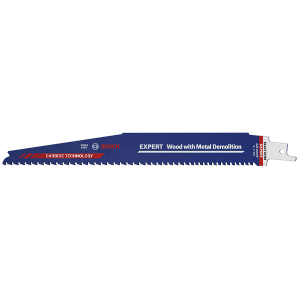 Bosch' EXPERT Wood with Metal Demolition S 1167 XHM saber saw blade is designed for robust material cutting, featuring a blade length of 225 mm and available in packs of 10. It is ideal for demolition work involving both wood and metal, providing durability and precision. These recipro saw blades are suitable for professional construction and renovation tasks.