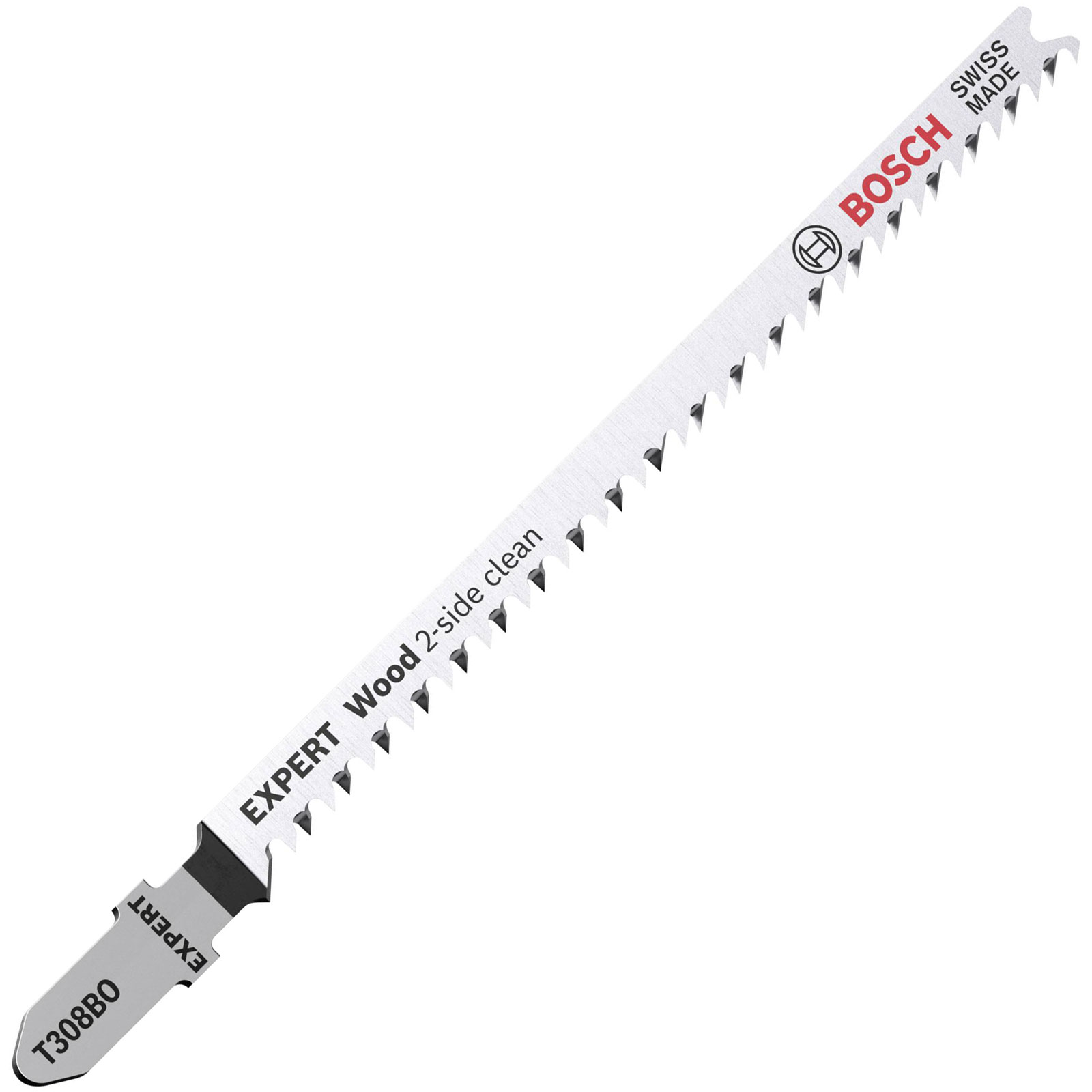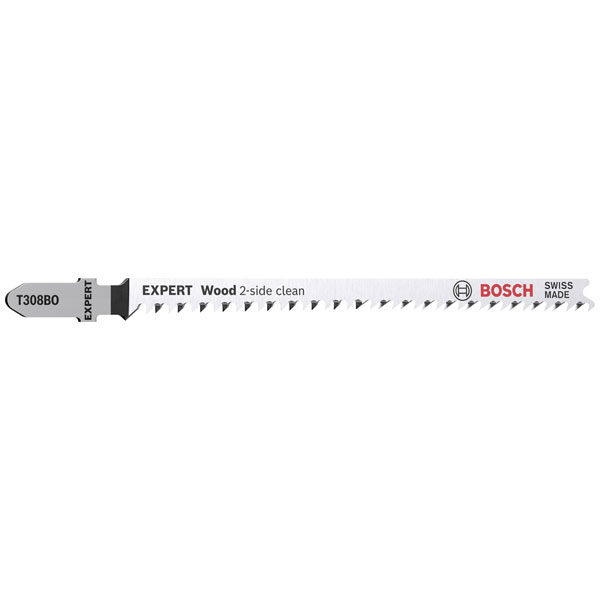 Bosch offers the 2608900554 EXPERT 'Wood 2-side clean' T 308 BO jigsaw blade, which comes in a pack of three. These jigsaw blades are specifically designed for clean cuts in hardwood. They are ideal for professional woodworking applications where precision and smoothness on both sides of the cut are required.