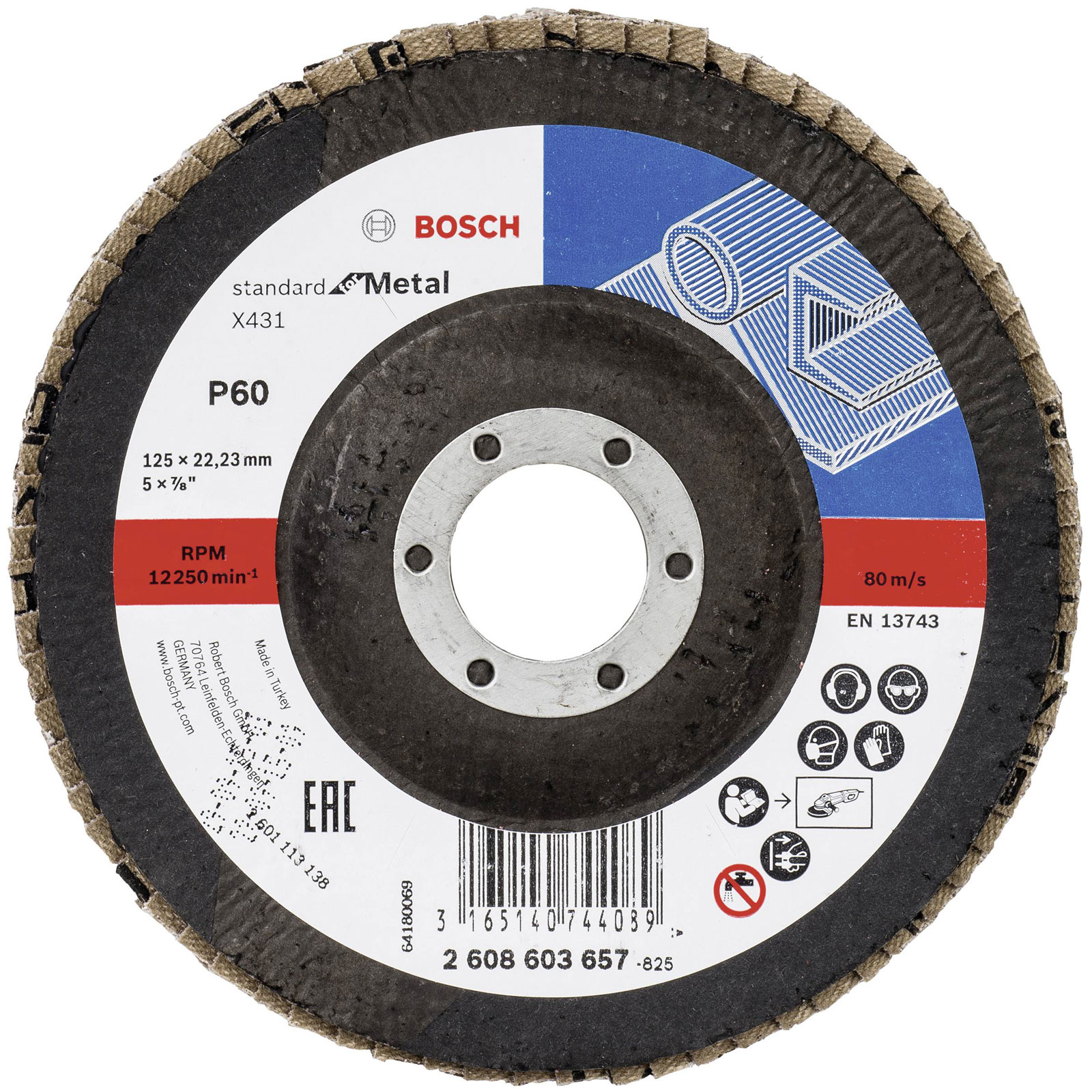 Bosch 2608603717 X431 Flap Disc 125mm 22.33mm Bore Metal Finish 1piece |
