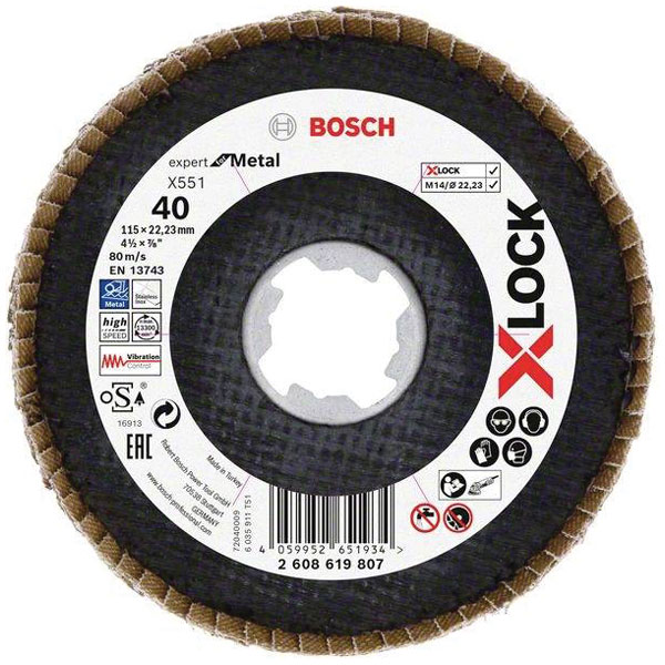Bosch 2608619814 X551 Flap Disc 115mm Quick X-LOCK For Metalwork |