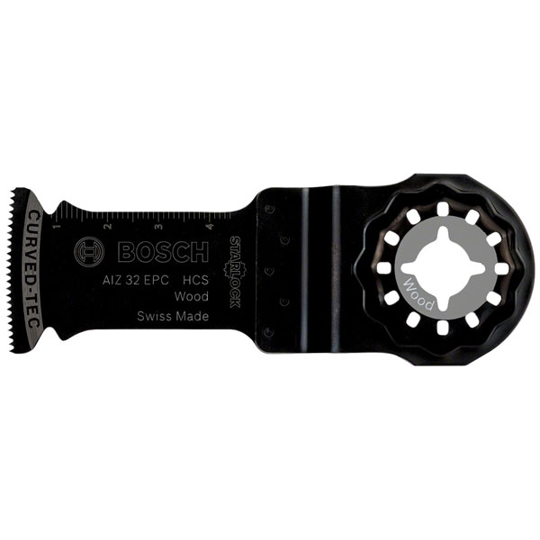 The Bosch AIZ 32 EPC HSC Curved-Tec Wood Blade delivers precise cuts in wood. Its tapered-base body minimises jamming and removes material faster. The rounded cutting edge (Curved-Tec) allows for precise and smooth plunge cutting.