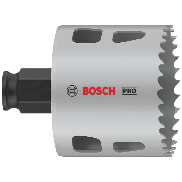 The Bosch PRO Multi Material PC Plus Hole Saw with an enhanced tooth design for fast and smooth cuts and high-cobalt HSS alloy teeth for longevity. It tackles steel cladding and drywall effectively.