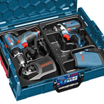 This comprehensive power tool kit includes a Bosch GSB 12V-15 combi drill and a GDR 12-105 impact driver as well as two 12V 1.5Ah Li-ion batteries and a charger.