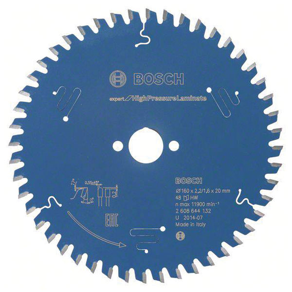 Bosch produces circular saw blades designed for cutting high pressure laminate materials, manufactured with precision and durability in mind.
