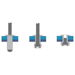 These dome head standard blind rivets from Bralo have an aluminium body and a mandrel made from zinc-plated steel. These "pop" rivets have a thread of 4mm and are 16mm long. They are suitable for use with panel thicknesses from 10.5 up to 12.5mm.
