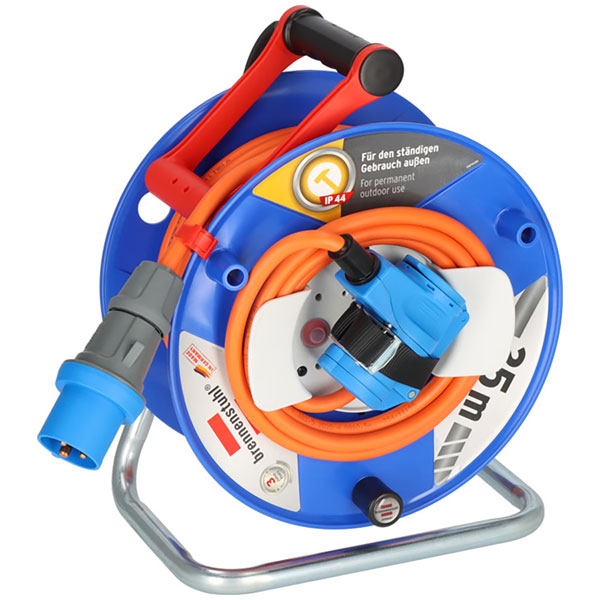 The convenient CEE angled coupling sockets include an earth contact combination socket with a self-closing lid, making this cable reel a must-have for camping and maritime purposes.