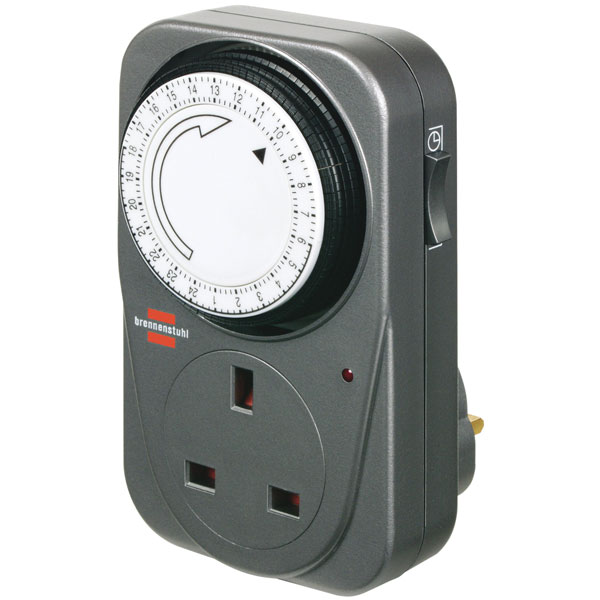 This 24-hour Timer MZ 20 GB from Brennenstuhl is a quality 24-hour programme offering up to 96 On/Off switching times per day that can be set - the shortest switching time is 15 minutes.