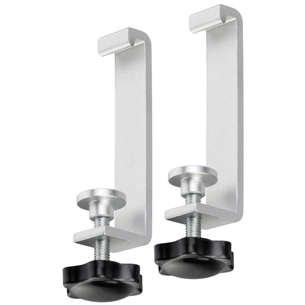 The Brennenstuhl clamp enables flexible positioning of the aluminium office line socket strip at work place. A fastening at the edge of the table is possible by means of screw terminals, without blocking the work surface on the table. To secure the socket strip, simply remove the adhesive pads from the bottom of the power strip and hook the table clamps into the socket strip. With these clamps the Aluminium-Office-Line socket strip can be mounted easily and flexibly at the desk, whereby you have direct access to the sockets.