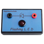 This Flashing LED module from BrightSparks4Kids produces a red flashing light and can be used in association with the BrightSparks4Kids Beginners Electricity Kit. Flashing LEDs are found in household alarm systems but have numerous other applications. This module can be combined with other units in the kit and used as a visual alarm to add to your circuit.