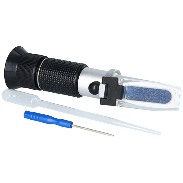 Brilliant Tools BT536010 refractometer, an optical testing device used in environmental testing. This optical meter is designed to provide accurate measurements of liquid concentration. Typical applications include testing coolant, sugar solutions, and other liquid mixtures.