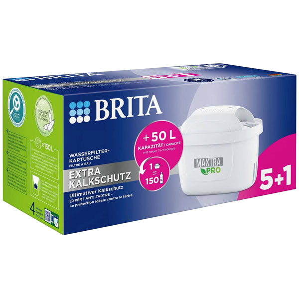 Brita 122225 Maxtra Pro Extra 5+1 is a white water filter pack designed for consumers seeking enhanced filtration performance. This product is engineered to effectively reduce impurities such as chlorine, limescale, and metal contaminants, ensuring improved purity and taste of water. The filtration technology employed in the Maxtra Pro series leverages micro carbon pearls and ion exchange pearls, optimising the filtering process for longevity and efficiency. Commonly utilised in domestic settings, these filters are compatible with Brita water filter jugs and dispensers, providing an essential enhancement in water quality for daily use and consumption.
