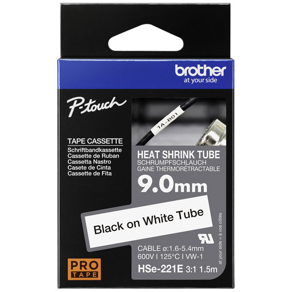 Brother HSE221E Label Machine Tape Heat Shrink Tube 8.8mm x 1.5m Black on Whit