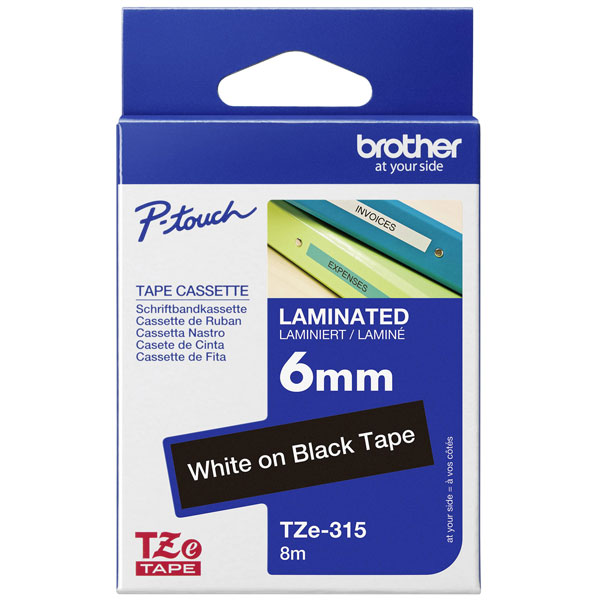 Brother TZE315 1368931 Label Tape Black on White 6mm Laminated Durable