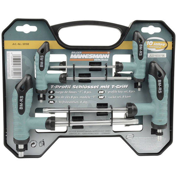 Brüder Mannesmann M18198 Workshop Screwdriver Set 8pc Star T-Handle S2-Steel