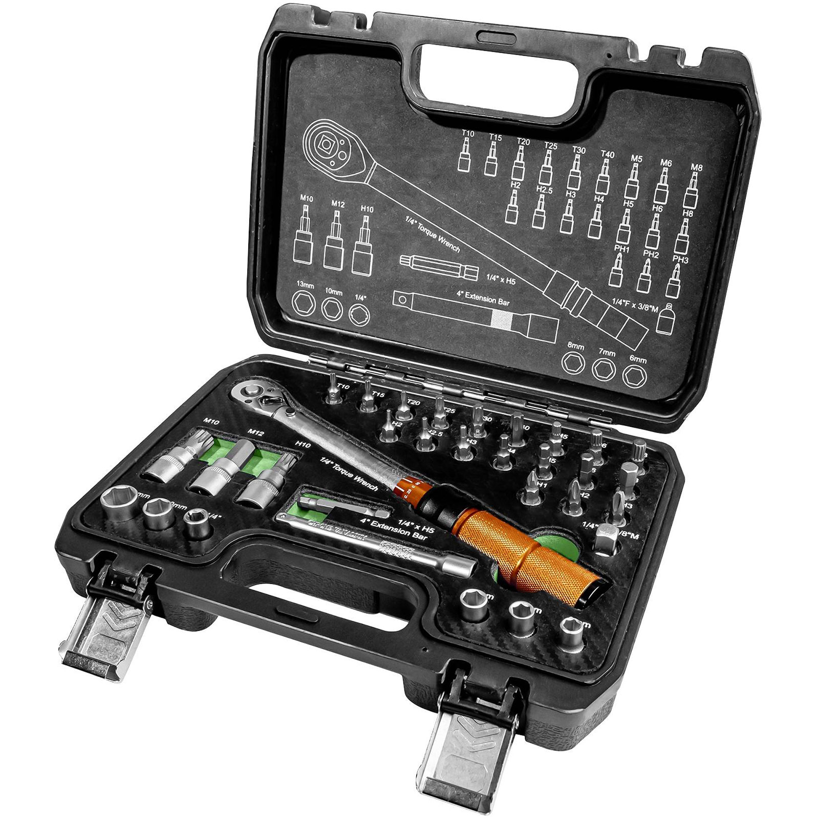 Brüder Mannesmann M18315 Torque Wrench Set 1/4" 5-25 Nm 32-Piece Tool Set