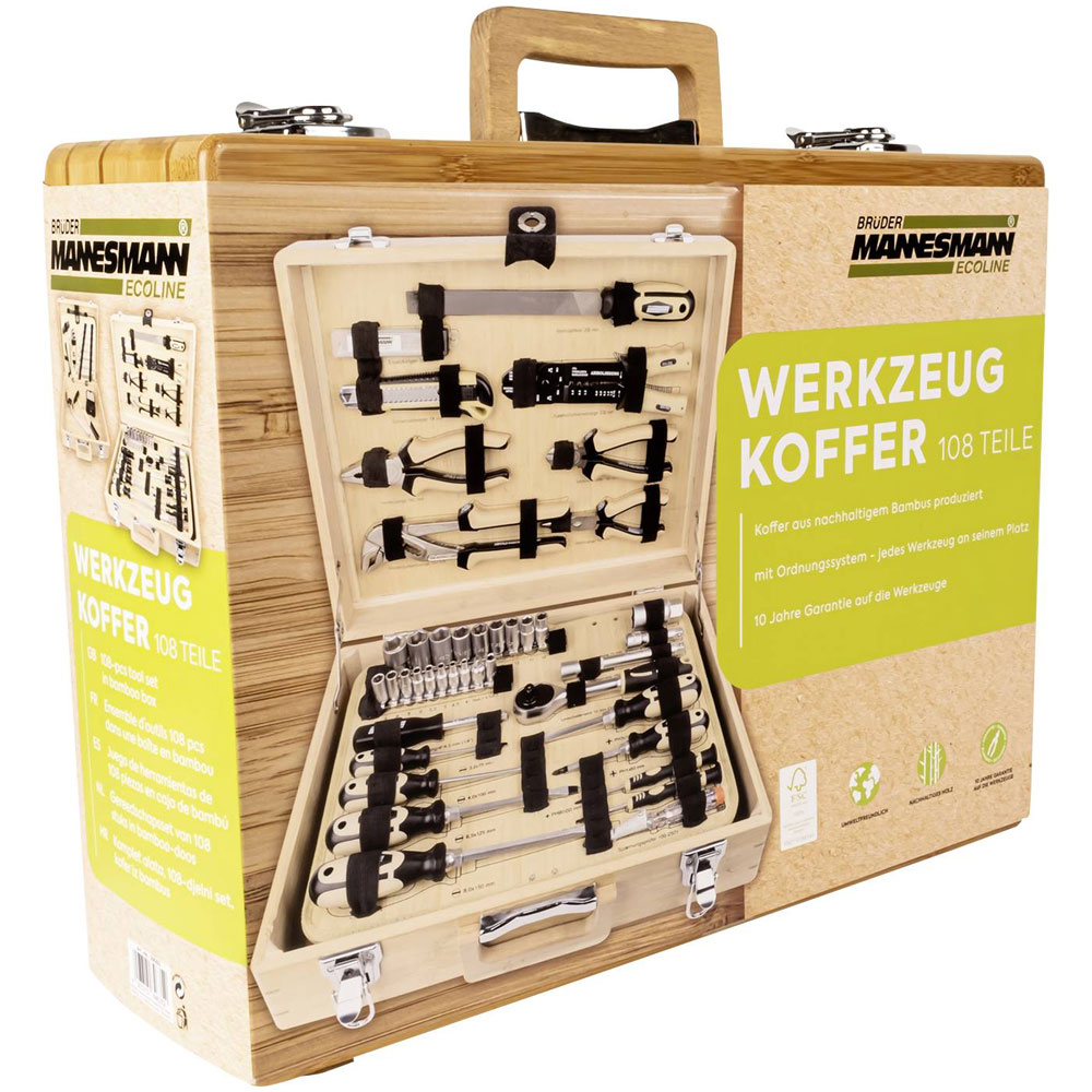 Brüder Mannesmann M29002 Bit Set Bamboo Case Eco-Friendly 108 Parts
