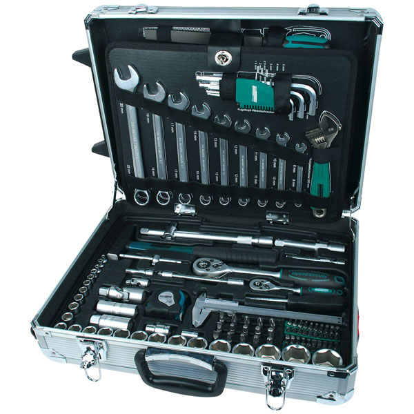 The Brüder Mannesmann M29077 tool box is a 159-piece tool set measuring 54 x 41 x 18 mm. It is compact yet fully equipped with essential tools. Ideal for household, automotive, or professional use, it provides versatility and convenience for various tasks.