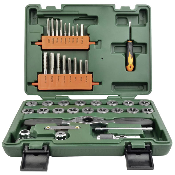 Brüder Mannesmann's M53230 threaded insert set includes 40 pieces, catering to various metric sizes from M3 to M12. This set is ideal for repairing or creating threads in metalwork and maintenance projects. Designed for durability, it's perfect for both professional engineers and DIY enthusiasts.