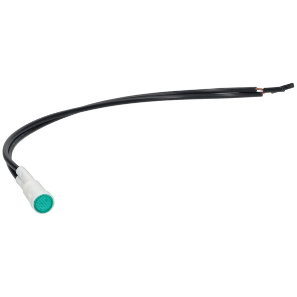 Bulgin L295000NAE 8mm Mounting Hole Green 230V Neon Leaded Panel Indicator - The L295000NAE is a Neon Indicator with wire leads and 7.5mm round 3.9mm deep lens.