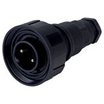Industry standard IP68 rated threaded circular free plug with 2 poles from Bulgin.