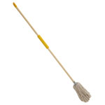 Bulldozer HQ.PY14/F4 cotton mop features a soft grip wooden handle for comfortable use.