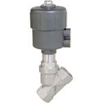 A stainless steel bodied 2/2-way air controlled seat valve from Busch Jost's 84520 series. The normally closed valve is operated by means of neutral gases.