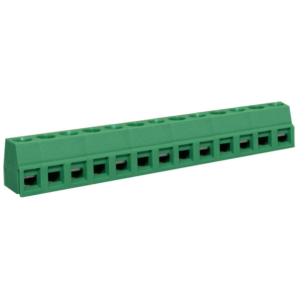A 7-pole low profile 10mm pitch professional rising clamp terminal block designed for use on PCBs.