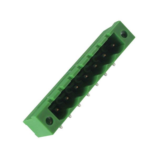 A 7-pole pluggable male 5mm pitch professional rising clamp terminal block designed for use on PCBs.