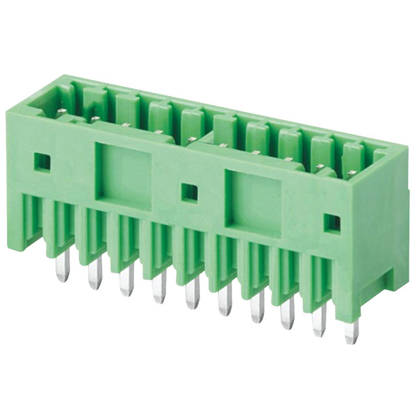 A 10-pole pluggable male 2.5mm pitch professional rising clamp terminal block designed for use on PCBs.