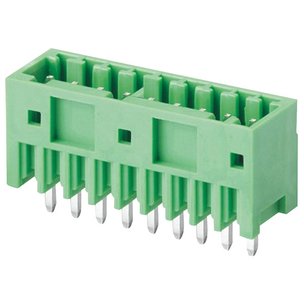 A 9-pole pluggable male 2.5mm pitch professional rising clamp terminal block designed for use on PCBs.