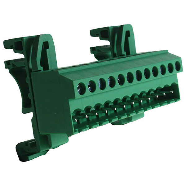 A 12 pole pluggable male vertical 5.08mm pitch professional rising clamp terminal block designed for DIN rail mounting.