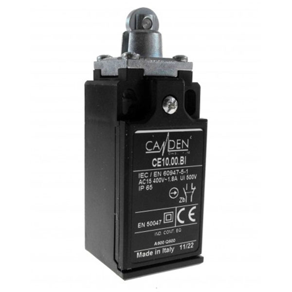 Camden Boss CE10.00.BI Limit Switch 30mm IP65 Plastic Case Roller Plunger is a limit switch which has IP65 metal head, with plastic casing and a roller plunger.