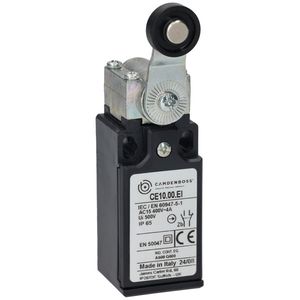 Camden Boss CE10.00.EI Limit Switch 30mm IP65 Plastic Case Roller Lever Nylon is a limit switch with IP65 metal head and plastic casing with roller lever nylon.