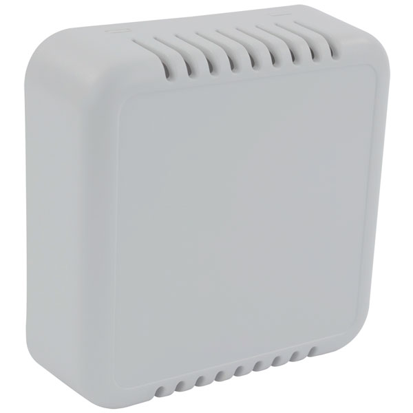 A size 2 vented grey wall mountable enclosure that makes an ideal enclosure for room sensors. The vented housing allows airflow, making it ideal for thermostats, environmental sensing and IoT applications.